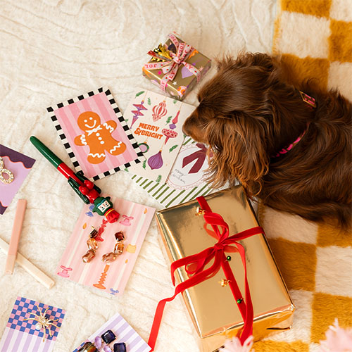 BY31® Espositori bigiotteria in cartoncino "Have a bowtiful Christmas!" beige chiaro-rosa-rosso-arancione caldo