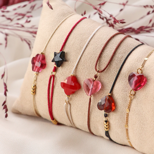 Perline sfaccettate fashion quadrifoglio rosa indiano