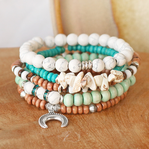 Cerchi idee con perline di legno? Allora sei nel posto giusto! Ci siamo dati da fare e abbiamo realizzato bracciali tosti con le perline di legno, sia da uomo che da donna. Per i bracciali da uomo, il top sarebbe utilizzare varie perline di legno scuro. Crea un bracciale con perline di legno, di metallo DQ e un filo elastico. Invece, per realizzare bracciali di tendenza da donna, infila le perline di legno su un cordoncino cerato per poi trasformarle in un fiore. Consiglio: applica un po’ di colla sulle estremità del filo in modo da infilare le perline facilmente. Per un look ancora più estivo, puoi aggiungere le conchiglie cipree al bracciale. Crea vari bracciali abbinando le perline di legno a quelle in pietra naturale, alle chips e ai ciondoli di metallo DQ. Mettiti all’opera e realizza meravigliose creazioni dal look naturale!