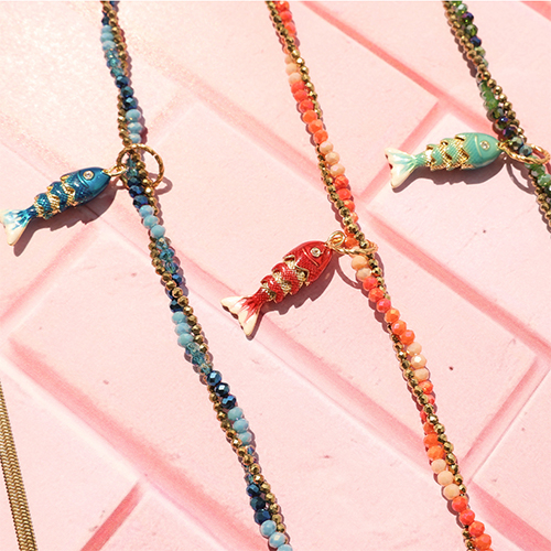 Questa nuova collezione offre collane colorate con perline sfaccettate scintillanti e orecchini a cuore in acciaio inossidabile con dettagli in smalto. Due pezzi distinti, perfetti insieme o separati. Pronti da indossare, luminosi e ideali per mixare e abbinare.