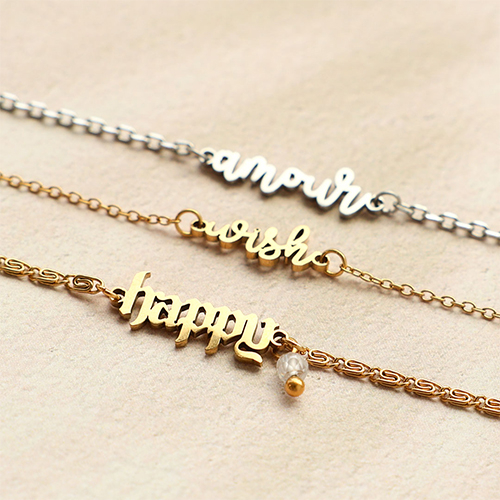 Questa nuova serie di distanziatori in acciaio inossidabile, disegnati dal nostro team interno, include parole d'ispirazione come wish, happy, amour, dreamer e adore. Perfette per collane sovrapposte, bracciali misti e orecchini. Da non perdere!