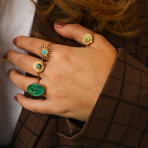 Anelli in acciaio inossidabile smalto tonda oro-verde chiaro