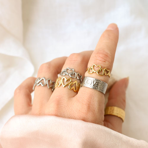Anelli in acciaio inossidabile cuore oro