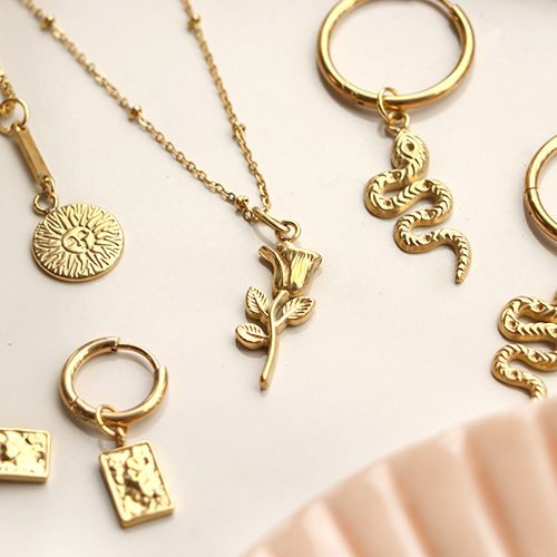 Cerchi ispirazione su come abbinare i ciondoli ai tuoi gioielli? Questo set di ispirazione ti guida alla creazione di collane e braccialetti alla moda, con ciondoli in acciaio inossidabile. Una collana a doppio o triplo giro è perfetta se cerchi una collana di tendenza. Puoi creare collane a rolò a 2 o 3 giri, di diversa lunghezza, con ciondoli, e per finire, scegli una chiusura. Usa vari tipi di ciondoli per un risultato super elegante e alla moda. Combina catene a rolò fini o grosse e ciondoli, per creare braccialetti. Puoi appendereil ciondolo alla collana, ma anche alla chiusura. Completa i tuoi gioielli con componenti in acciaio inossidabile, come anellini apribili, chiusuree allungatrici, per una collezione di gioielli di alta qualità.