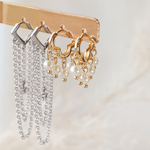 Cerchi componenti per orecchini per la tua prossima collezione? Questi orecchini a cerchio color oro e argento sono facilissimi da personalizzare perché tutti dotati di occhielli nella parte inferiore. Usa bellissimi ciondoli in ottone TQ, ciondoli Crystal Glass e catene a rolò da appendere agli orecchini. Oppure crea i tuoi ciondoli con vari tipi di perle d'acqua dolce o altre perline e chiodini.