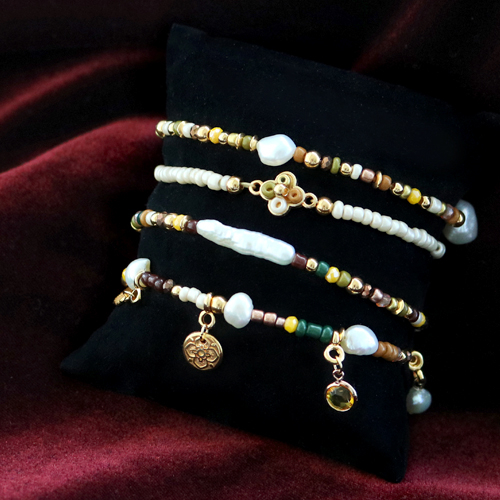 Crea i migliori bijoux con la nostra nuovissima collezione di perline di vetro rocailles. Abbiamo scelto di creare braccialetti e orecchini, ma puoi utilizzare queste perline versatili per tutti i tipi di bigiotteria. Ad esempio, abbina le perline di vetro rocailles con altri oggetti di alta qualità come ciondoli di metallo DQ e perle d'acqua dolce. Scegliendo bei colori invernali ottieni un effetto davvero alla moda!