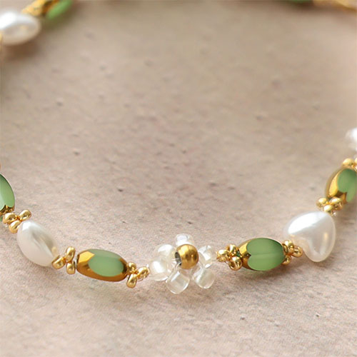Perle di acqua dolce distanziatore quadrifoglio oro-bianco naturale