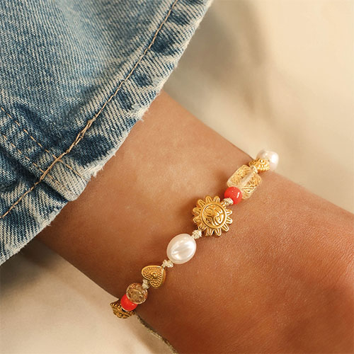 Perline in acciaio inossidabile luna & sole oro