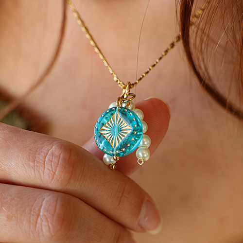 Perline in acrilico tonda con quadrato turchese blu-oro