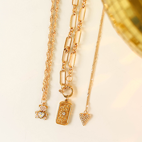 Ciondoli in acciaio inossidabile cuore con strass oro-trasparente