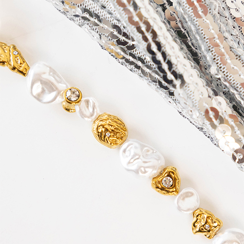 Perline in acciaio inossidabile irregolare con strass oro-trasparente