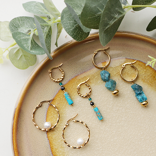 Gli orecchini a cerchio in acciaio inossidabile sono pronti da indossare, ma puoi anche aggiungere un tocco personale. Per farlo, puoi appendere un bel ciondolo o realizzarne uno tutto tuo con perle d'acqua dolce, perline in pietra naturale grezze o perline sfaccettate in pietra naturale. Le perline Miyuki con fiori, anch'esse pronte da indossare, possono essere unite tra loro con un filo di nylon e poi appese a un orecchino a cerchio per un look elegante.