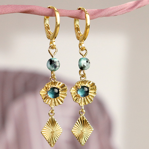 Sappiamo cosa creare con questa nuova collezione! Abbiamo realizzato orecchini in stile minimalista con i nuovi ciondoli in ottone e componenti per orecchini. Una tendenza che vediamo ancora nel mondo della moda. Scegli il tuo pezzo intermedio preferito dalla collezione e appenderlo semplicemente su uno dei componenti per orecchini. Per trasformare gli orecchini in veri e propri bijoux che attirano l’attenzione, quindi appendi di nuovo un bellissimo ciondolo in pietra naturale o un ciondolo in ottone. Ti piace una sfida? Quindi scegli di creare un ciondolo o un distanziatore con una perla di pietra naturale con l'aiuto di un chiodino a occhiello. In questo modo crei i disegni più belli. Ovviamente puoi anche facilmente attaccare questi ciondoli fantastici agli orecchini con un anello apribile.