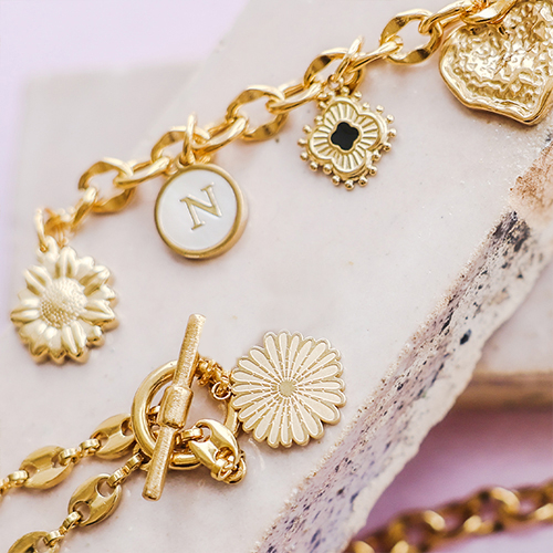 Questi bei ciondoli a forma di fiore possono essere facilmente incorporati in gioielli di grande effetto. Puoi attaccare diversi ciondoli a una catena a rolò grossa e chiuderla con un bel moschettone, e utilizzare i componenti per orecchini della collezione per creare orecchini coordinati.