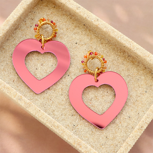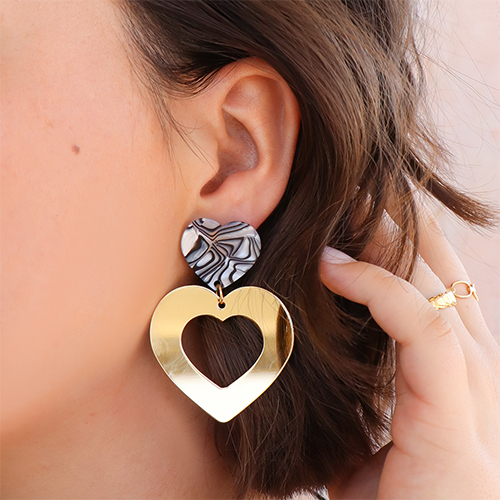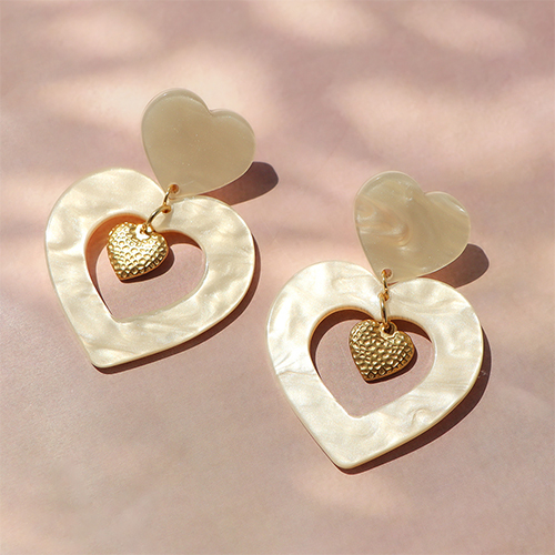 • Orecchini in acciaio inossidabile cuore rilievo con anellino oro