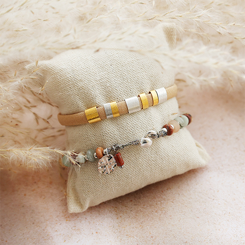Utilizza questi componenti per realizzare gioielli che si adattino a uno stile naturale e tribale. Scegli un nastro elastico Ibiza che si abbini bene ai passanti di questa collezione e completa i bracciali con una chiusura con perline scorrevole DQ. Oppure infila un bracciale su una coda di topo in metallo e scegli vari colori di perline in pietra naturale da alternare a perline in metallo DQ. La spilla di sicurezza DQ può essere inserita come elemento distintivo in una catena a rolò.