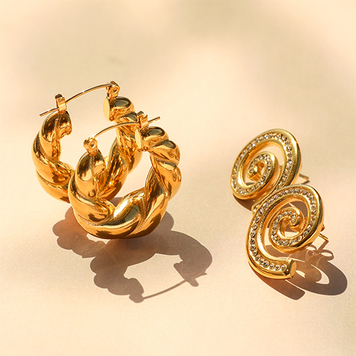 Orecchini in acciaio inossidabil a cerchio spirale oro