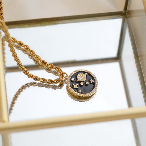 Metallo TQ in ottone ciondolo luna smalto oro-nero