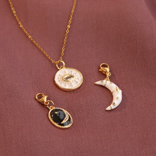 Metallo TQ in ottone ciondolo luna smalto Oro-bianco