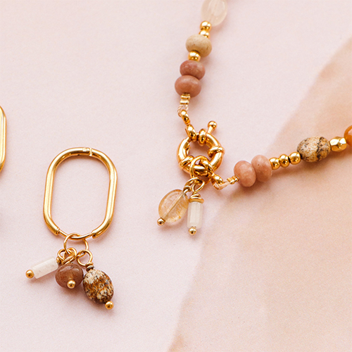 Queste perline in pietra naturale sono perfette per tutti i tuoi gioielli. Puoi utilizzare la coda di topo per un bracciale semplice o combinare una catena a rolò con un filo elastico su cui infilare perline in pietra naturale. Utilizza perline Katsuki, perline in pietra naturale e filo di nylon S-lon per un bracciale elegante. Crea i tuoi orecchini personalizzati utilizzando i chiodini per trasformare le perline in pietra naturale in bellissimi ciondoli da appendere a un orecchino a cerchio in acciaio inossidabile.