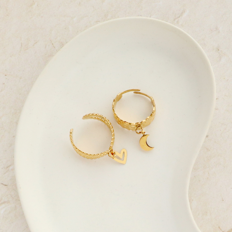Cerchi anelli unici per la tua collezione di gioielli? Dai un'occhiata a questa nuova gamma di anelli in acciaio inossidabile con occhiello. La serie è composta da diversi anelli nei colori oro e argento. Puoi fissare una bella perlina o un ciondolo all'occhiello e il tuo anello è pronto!