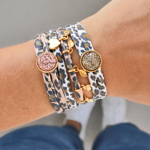 Con l'elastico di Ibiza si possono facilmente realizzare bellissimi gioielli e accessori. Guardate l'ispirazione per gli elastici per capelli e i braccialetti di moda realizzati con nastro elastico cucito con stampa leopardo