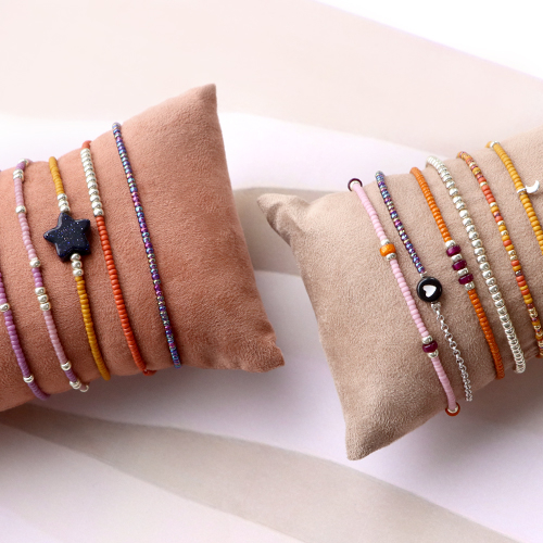 Cerchi ispirazione per la tua collezione di bracciali per la prossima stagione? Queste piccole perline rocailles Miyuki, in bellissimi colori caldi, ti aiuteranno a crearla. Puoi utilizzare il filo metallico e chiudere il bracciale con una bella chiusura o usare il filo elastico. Puoi alternare le perline con perline in oro e argento o aggiungere al bracciale un bel ciondolo. Se si utilizza una chiusura, si raccomanda un’allungatrice, così che il bracciale si adatti a tutti. Un altro suggerimento è di usare un tappetino per perline in modo che le perline non rotolino via.