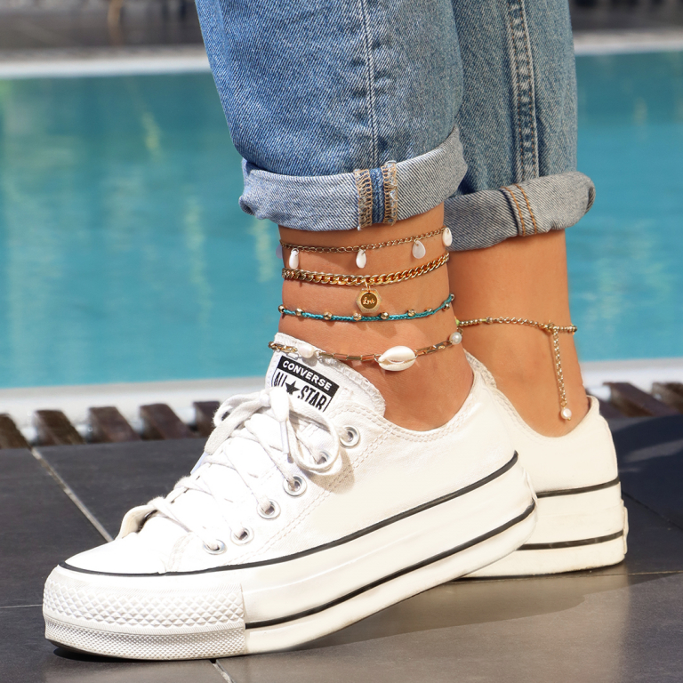 Le cavigliere sono un must per ogni outfit estivo! Ecco perché questi articoli di tendenza non potranno mancare nella tua collezione estiva. Lasciati ispirare e realizza le creazioni più belle! Per esempio, potresti utilizzare varie perline, ciondoli di tendenza e articoli di conchiglia! Oppure che ne diresti di una cavigliera con catena a rolò a maglie grosse? Indossa la popolare cavigliera con catena a rolò insieme alla tua creazione e agli articoli già pronti, per un look must have.