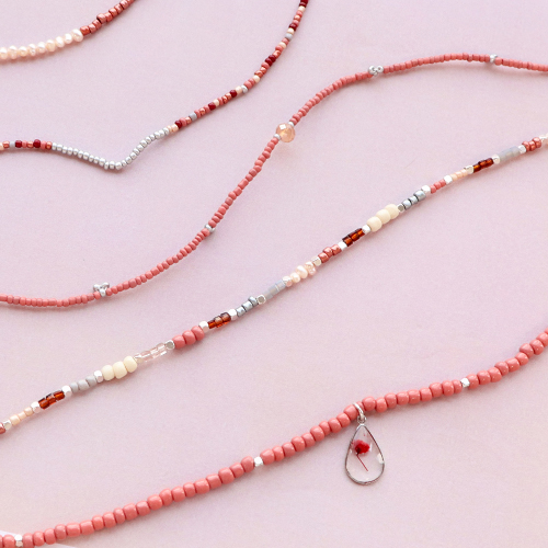 Cerchi ispirazione per creare gioielli nei colori di tendenza per la prossima stagione invernale? In questo set d'ispirazione, abbiamo realizzato collane e chocker con perline di vetro rocailles e filo di nylon o metallico. Puoi alternare le perline di vetro con, ad esempio, perline a forma di cubetto o perle d'acqua dolce oppure creare una collana a cui fissare poi un bel ciondolo con fiori secchi. Con l’artistic wire puoi realizzare da te la chiusura, creando un occhiello su un lato del filo e un gancetto sull'altro. Attacca un anellino apribile all'altro lato della catena e la tua chiusura è pronta!