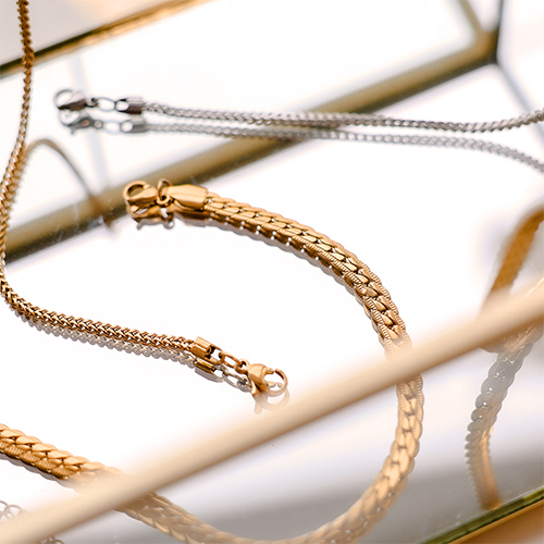 Cerchi bracciali e collane già pronti da aggiungere alla tua collezione di gioielli? Allora questa serie di gioielli in acciaio inossidabile fa al caso tuo! Tutti i gioielli sono disponibili nei colori oro e argento e si abbinano perfettamente alle tue creazioni fatte in casa.