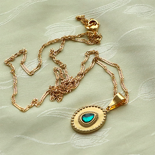 Ciondoli in acciaio inossidabile irregolare con pietra naturale oro-verde melone