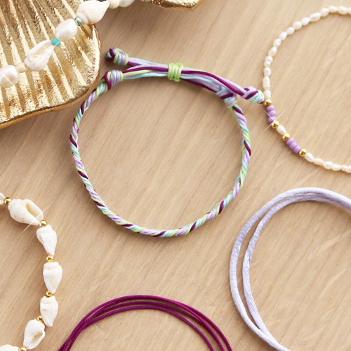 Che abbinando a un cordoncino macramè le perle d’acqua dolce e le perline a forma di conchiglia si possano realizzare creazioni divertenti, non è di certo un segreto. Ma come iniziare? Un’idea può essere realizzare un divertente braccialetto semplicemente annodando o intrecciando un cordoncino macramè di diversi colori. Chiudi con un nodo a scorsoio ed ecco pronto il tuo braccialetto estivo! Vuoi aggiungere un tocco extra? Infila le rocaille o le perle d’acqua dolce sul cordoncino macramè e fissa l’elemento centrale facendo un piccolo nodo accanto all’ultima perlina o con uno schiaccino. Così ogni cosa resta al suo posto. Con le perle d’acqua dolce e le perline a forma di conchiglia puoi realizzare anche un bel cordoncino per occhiali da sole. Infila su un filo di metallo perle e perline combinandole con rocaille e perline di metallo DQ e chiudi ai due lati con un fermino per occhiali.