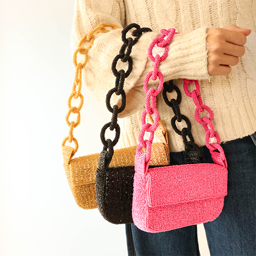 Borsa a mano con perline di vetro fucsia