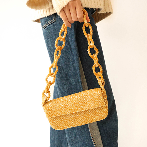 Borsa a mano con perline di vetro oro