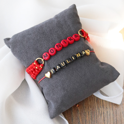 Con la nuova collezione di perline alfabeto in acrilico puoi creare bigiotteria fantastica per mamma & figlia. Crea, ad esempio, braccialetti alla moda con un nome o una citazione infilando le perline su filo elastico colorato. Abbina le perline alfabeto in acrilico con bellissime perline di pietra naturale e perline di metallo DQ o scegli di infilare l'intero braccialetto con perline alfabeto e perline di metallo DQ. Potrai decorare i braccialetti con nappine o ciondoli di metallo DQ. Vendi, ad esempio, due braccialetti insieme in una sacchetto in organza per bigiotteria, per un’effetto speciale.