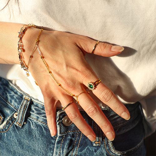 • Bracciale baciamano in acciaio inossidabile oro-cristallo