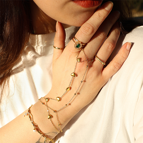 • Bracciale baciamano in acciaio inossidabile cuore oro-cristallo