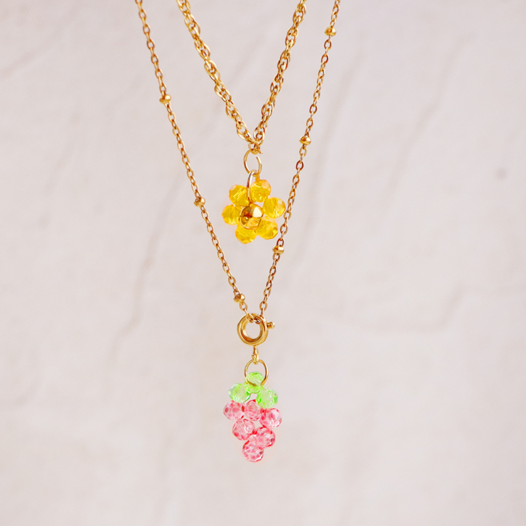 Questa nuova gamma di perline sfaccettate di varie forme, dimensioni e colori è perfetta per i gioielli estivi. Puoi realizzare orecchini lunghi e braccialetti vivaci o creare ciondoli di frutta con ciliegie o uva e attaccarli a una bella catena a rolò.