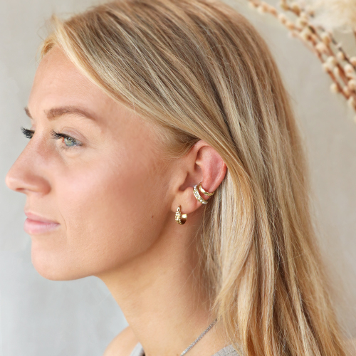 Questi orecchini ear cuff sono davvero alla moda! Sono disponibili in oro e argento, con perle o pietre in zirconia. Segui la tendenza e indossa contemporaneamente più orecchini ear cuff. Puoi anche combinare gli orecchini ear cuff con altri orecchini, come quelli a cerchio, per un look alla moda!
