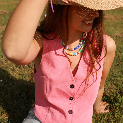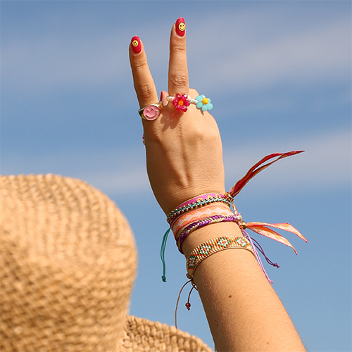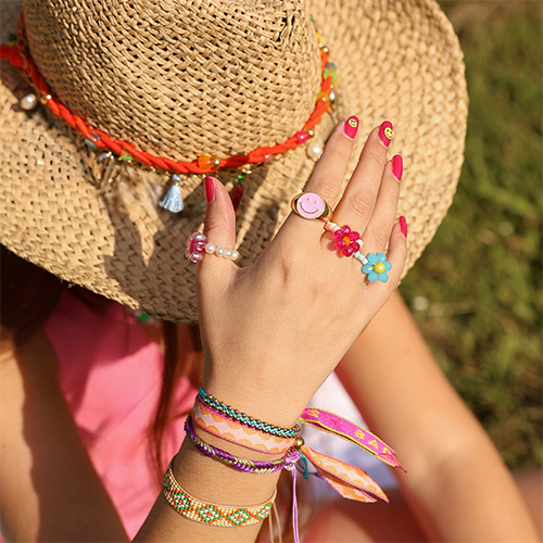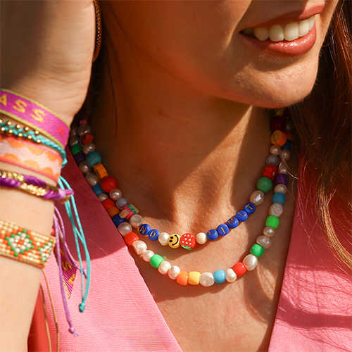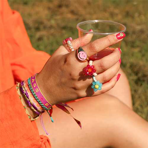 Lasciati ispirare e scopri gli indispensabili per il festival! Collane con perline in acrilico (lettere), collane pronte all'uso, fruttini in polimero e smiley in ceramica sono di gran moda. Per gli accessori da cappello scegli nastri elastici, perline in acrilico, catena a rolò, nappine, perle e ciondoli di frutta. I braccialetti con nastro con testo o i braccialetti intrecciati già pronti sono una mega tendenza. Non possono mancare accessori per capelli come fermagli con fiori e conchiglie, orecchini a cerchio con ciondoli e perline in acrilico.