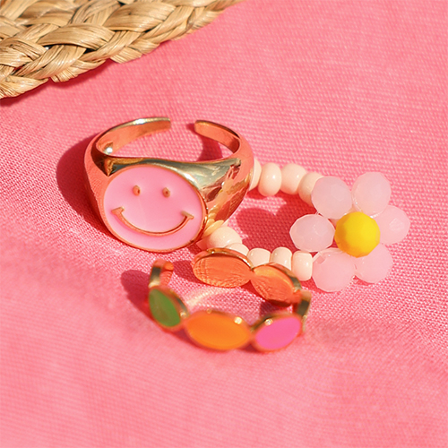 Anelli in acciaio inossidabile fiore oro-multicolore