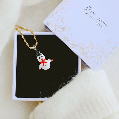 Pendenti di vetro pupazzo di neve bianco-rosso-nero