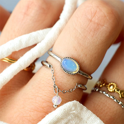 Anelli in acciaio inossidabile perle argento