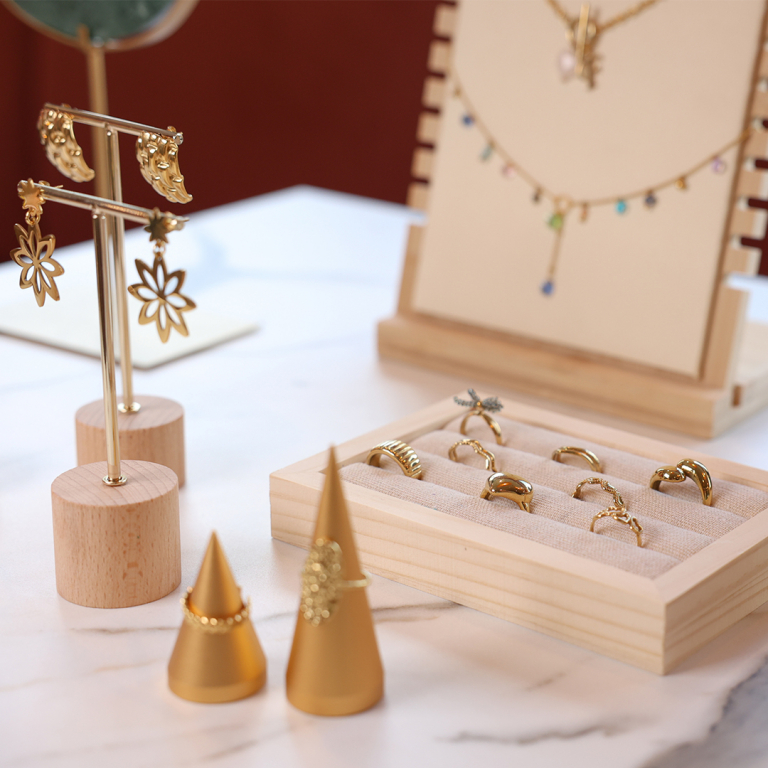 Espositore per bigiotteria per anelli 3 livelli naturale-oro