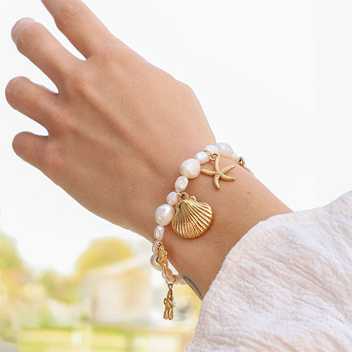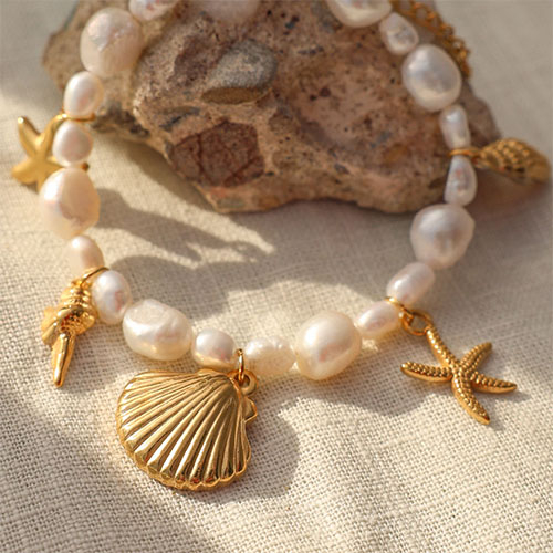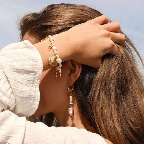 Lasciati ispirare con i nuovi ‘’look che amiamo’’ ispirati alle meraviglie dell'oceano: Tesori del mare! Le collane realizzate in filo coda di topo, abbinate a conchiglie, stelle marine e conchiglia ciprea catturano l'essenza del mare. Un braccialetto di perle d'acqua dolce con ciondoli in acciaio inossidabile a tema vita marina o orecchini con perline di conchiglie, perle d'acqua dolce e perline in ceramica di vita marina sono perfetti per completare la tua collezione di tesori marini. Immergiti nella nostra collezione e lasciati ispirare!