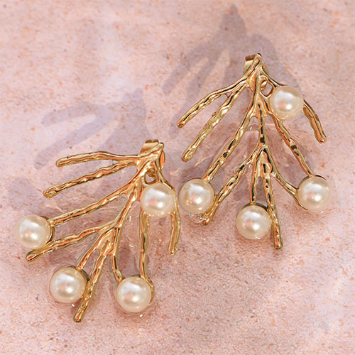 Orecchini in acciaio inossidabil alga marina Imitazione di perle oro