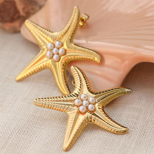 Orecchini in acciaio inossidabil stella marina Imitazione di perle oro