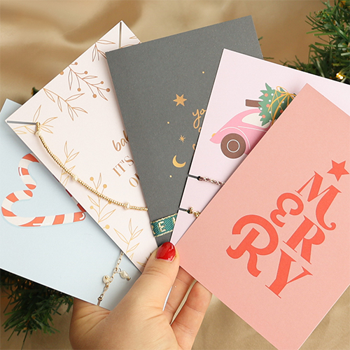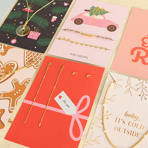 Questi espositori di gioielli unici con vivaci disegni invernali sono stati creati dal nostro team di design interno. Puoi usare i biglietti per dare un messaggio speciale o per attaccare i tuoi gioielli utilizzando la perforatrice Beadsmith per biglietti di gioielli: il successo è garantito!