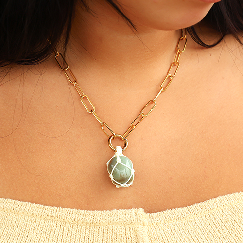 Perline in acrilico pesce verde ottanio-oro