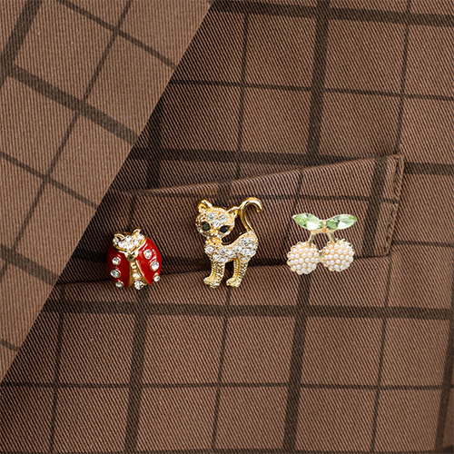Pins ciliegie / gatto / coccinella oro-verde-rosso-nero